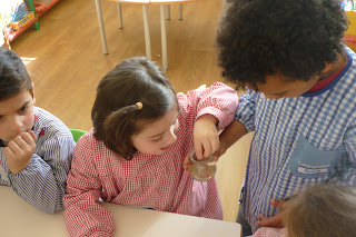 Hoje de tarde e após ouvirmos a história do "João Pé de Feijão" passámos à experiência da germinação de várias sementes como tínhamos planeado ontem!